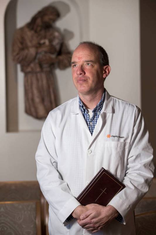 The chaplain at St. Rose Dominican Hospital, Burgess floated bed to bed that terrible night, as patients flooded the Henderson hospital’s emergency room.