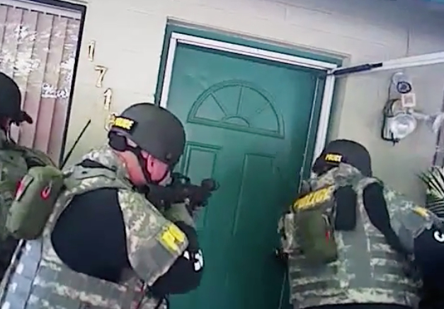 The officers involved were wearing tactical ballistic body armor and gear during the search warrant.