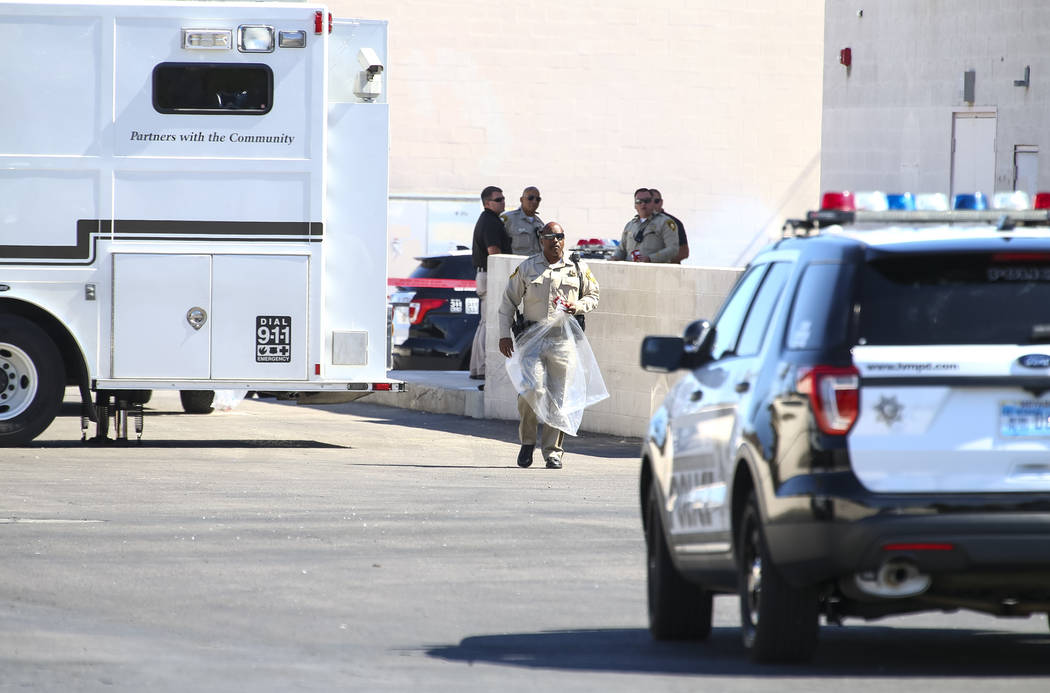 Metropolitan Police Department investigate an officer-involved shooting that occurred in a strip mall near Jones Boulevard and U.S. Highway 95 on Thursday, Sept. 28, 2017, in Las Vegas. Richard Brian Las Vegas Review-Journal @vegasphotograph
