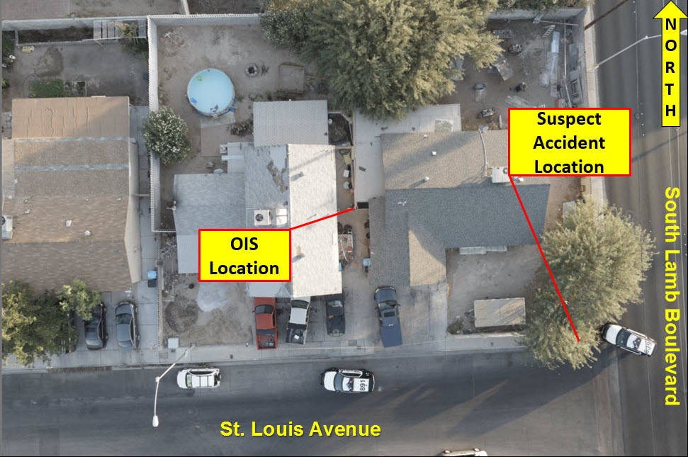 About 12:30 a.m., the officer tried to pull over a black Dodge Durango with license plates that belonged to another vehicle near Desert Inn Road and Boulder Highway, according to Captain Jamie Prosser of the Metropolitan Police Department’s Bureau of Internal Oversight and Constitutional Policing.