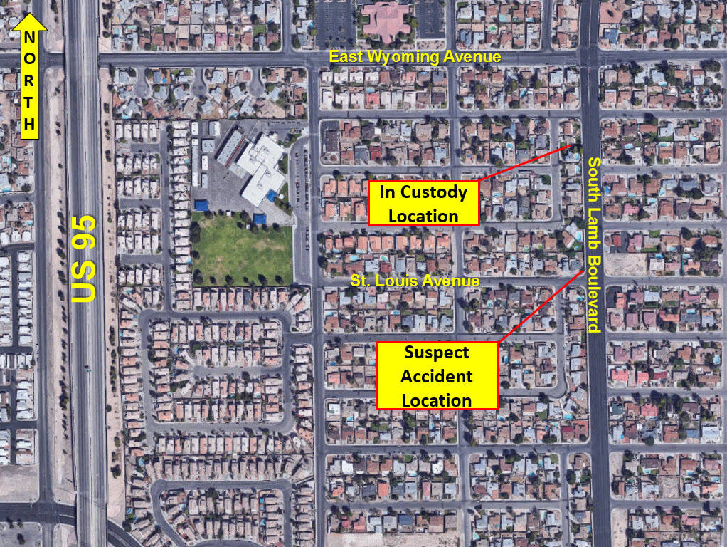 The officer fired one round shortly after 12:35 a.m. Friday, after the vehicle chase turned into a foot pursuit near Lamb and St. Louis Avenue. Murillo was found uninjured about three blocks from the scene of the shooting about two hours later. He was booked into the Clark County Detention Center.