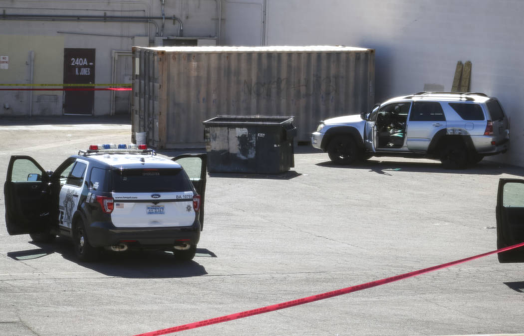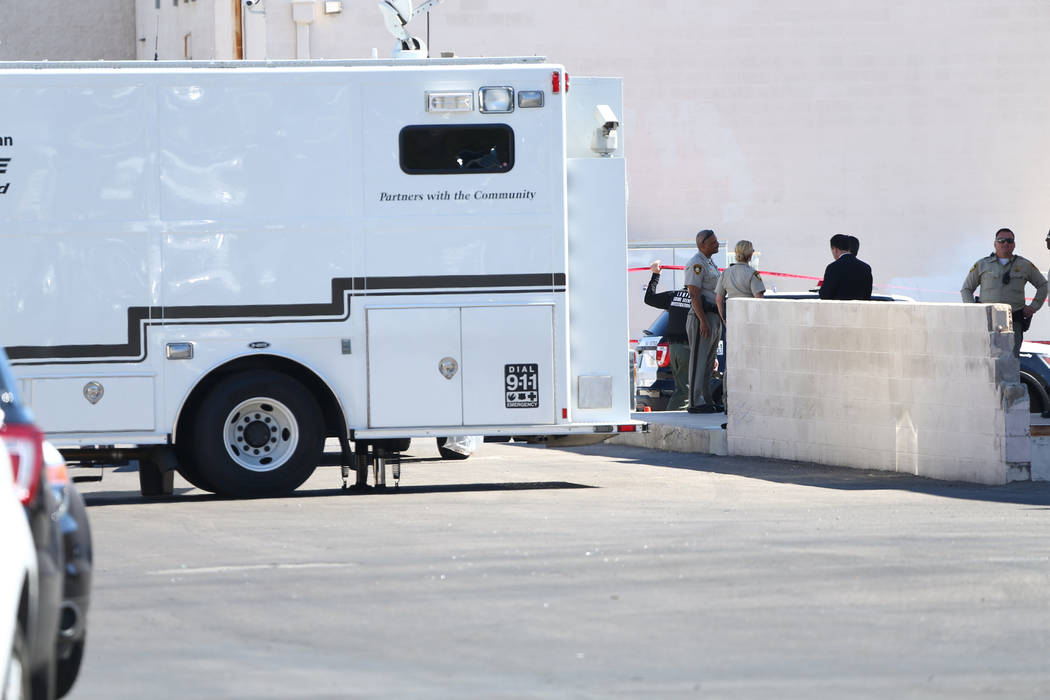 Metropolitan Police Department investigate an officer-involved shooting that occurred in a strip mall near Jones Boulevard and U.S. Highway 95 on Thursday, Sept. 27, 2017, in Las Vegas. Richard Brian Las Vegas Review-Journal @vegasphotograph