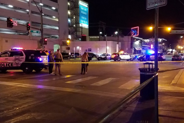 A man has been arrested after a shooting early Monday morning in downtown Las Vegas.