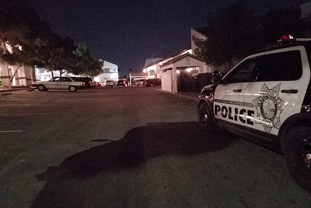 Las Vegas police initially believed the man was shot with a pellet gun about 12:15 a.m. at Hidden Village Apartments, 1825 Lewis Ave., Lt. Sophia Kypreos said. Later police said somebody fired seven to eight rounds of snake shot, which is a small type of shot often used against small animals. It wasn’t clear how many times the man was hit by the shot.
