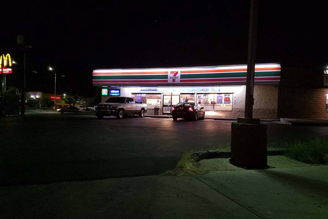 Metropolitan Police Lt. Grant Rogers said the man was shot just before 7 p.m. Sunday outside the 7-Eleven at 901 N. Rancho Drive, near Washington Avenue.