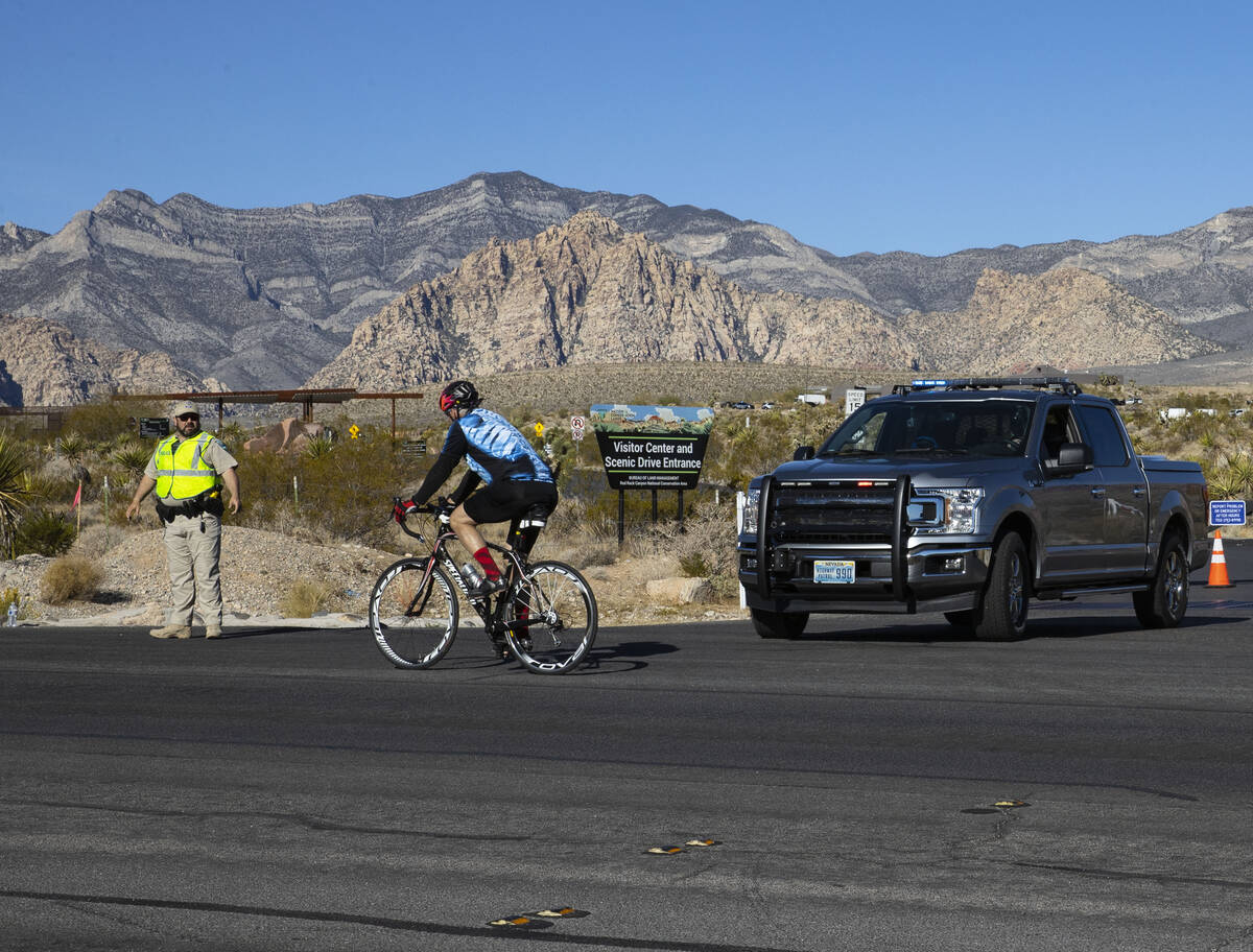 Diana Reyes of San Francisco, visiting Las Vegas this week to celebrate her birthday with friends, arrived to take an e-bike tour at the scenic loop only to discover the loop closed with police blocking the entry.