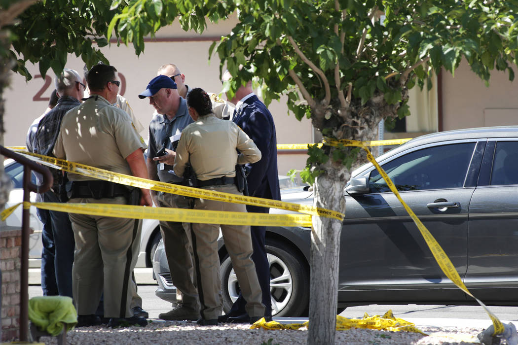 At about 2 p.m., police responded to reports of a shooting at Teddy Drive and Merritt Avenue, near Sahara Avenue.
