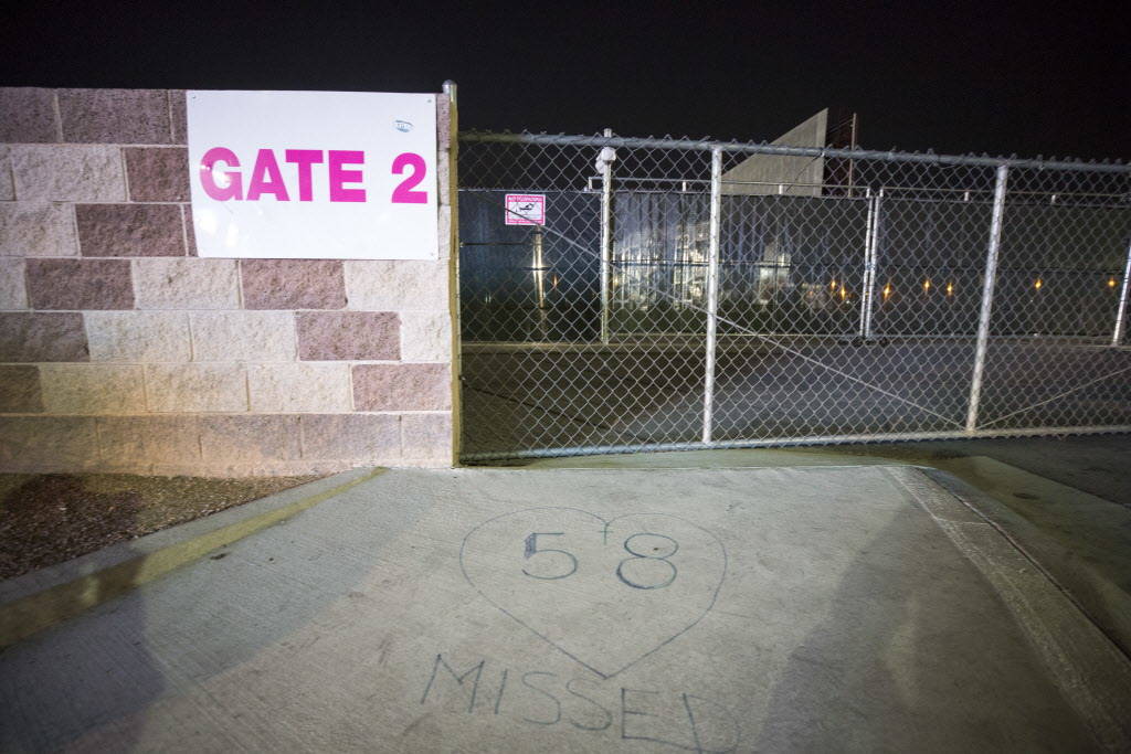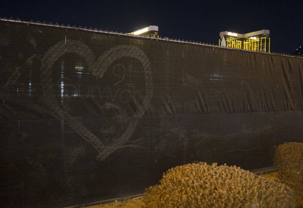 Meanwhile, the concert site’s Las Vegas Boulevard-facing fence also has become an occasional, if unofficial, gathering place for stuffed animals, notes and Route 91-related graffiti.