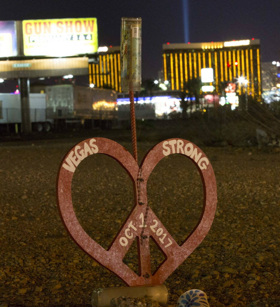 And whether it’s a teddy bear affixed to a chain link fence at the site of the tragedy, or message-bearing rocks left at the community healing garden in downtown Las Vegas, the simple mementos still offer a way for Southern Nevadans to cope with their grief over the Oct. 1 incident that left 58 dead and hundreds injured.
