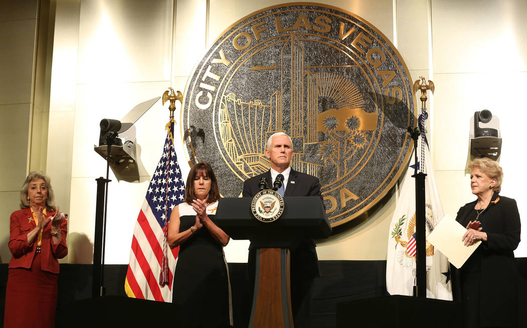 Pence’s speech in Las Vegas follows President Donald Trump’s visit Wednesday, when he met with first responders and spoke with injured people at University Medical Center.