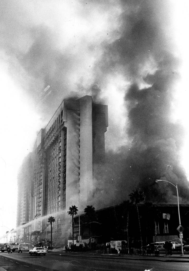 On Nov. 21, 1980, a smoldering electrical fire broke through a wall in the first-floor deli, creating a giant fireball that swept through the hotel-casino, blowing out the front doors and leaving behind death and destruction.