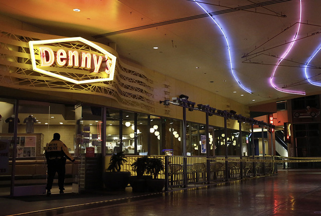 Police were initially called to the Denny’s at 450 Fremont St., near North Fourth Street, Hank said, though as of 10 p.m. he did not confirm specifically where the shooting occurred.