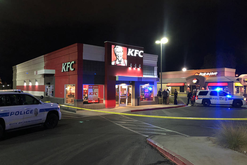 A news release from the Henderson Police Department said officers responded at 7:13 p.m. to a restaurant in the 1200 block of West Warm Springs Road “in reference to a panic alarm coming from the freezer of a fast food establishment.” Police found a 35-year-old male employee in the freezer with a gunshot wound to the chest. The man was transported to Sunrise Hospital and Medical Center in critical condition, but he has since been upgraded to stable.