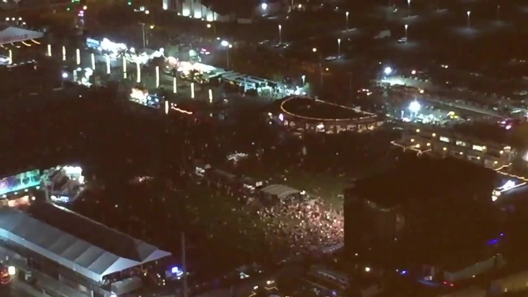Jessica Noble was standing about 30 people back from the concert stage at the Route 91 country music festival Sunday night when she heard five pops that sounded like firecrackers. A few seconds later a steady stream of gunfire erupted about 20 feet to her right.