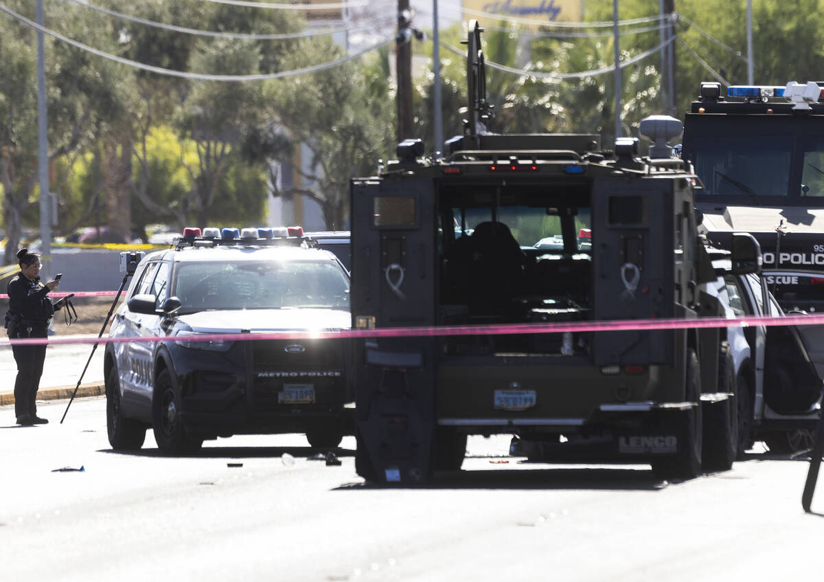On Friday morning, a white SUV was wedged between an armored SWAT vehicle and a Metro cruiser that was facing the SUV outside the Burger King, at 4455 East Charleston. Several other cruisers and SWAT trucks surrounded the SUV.