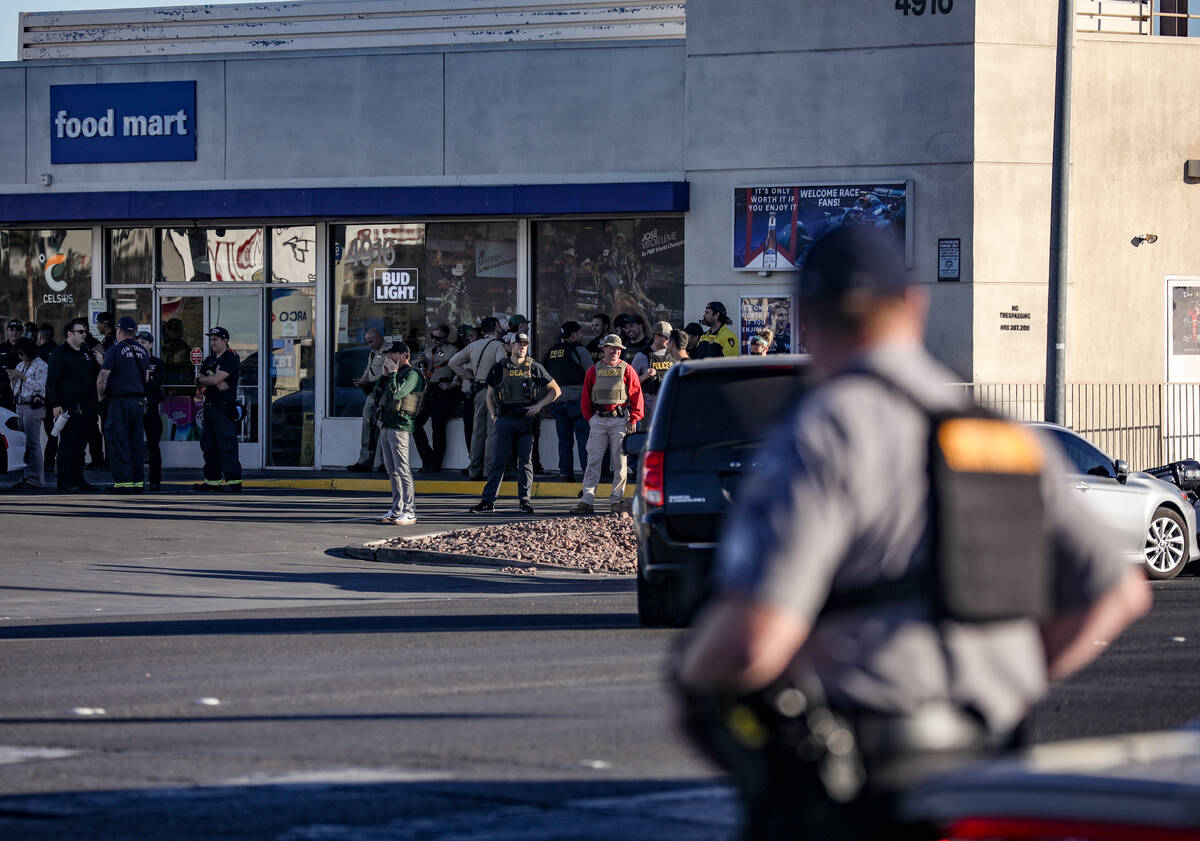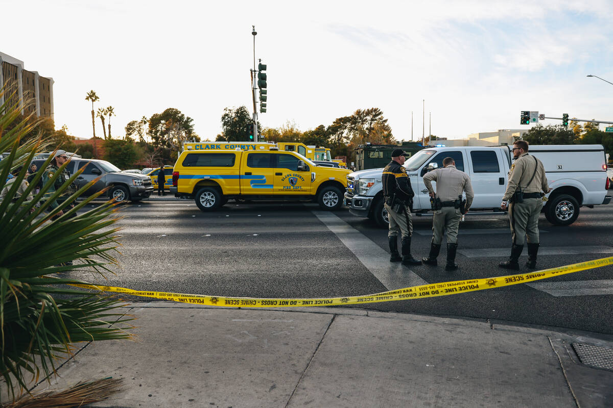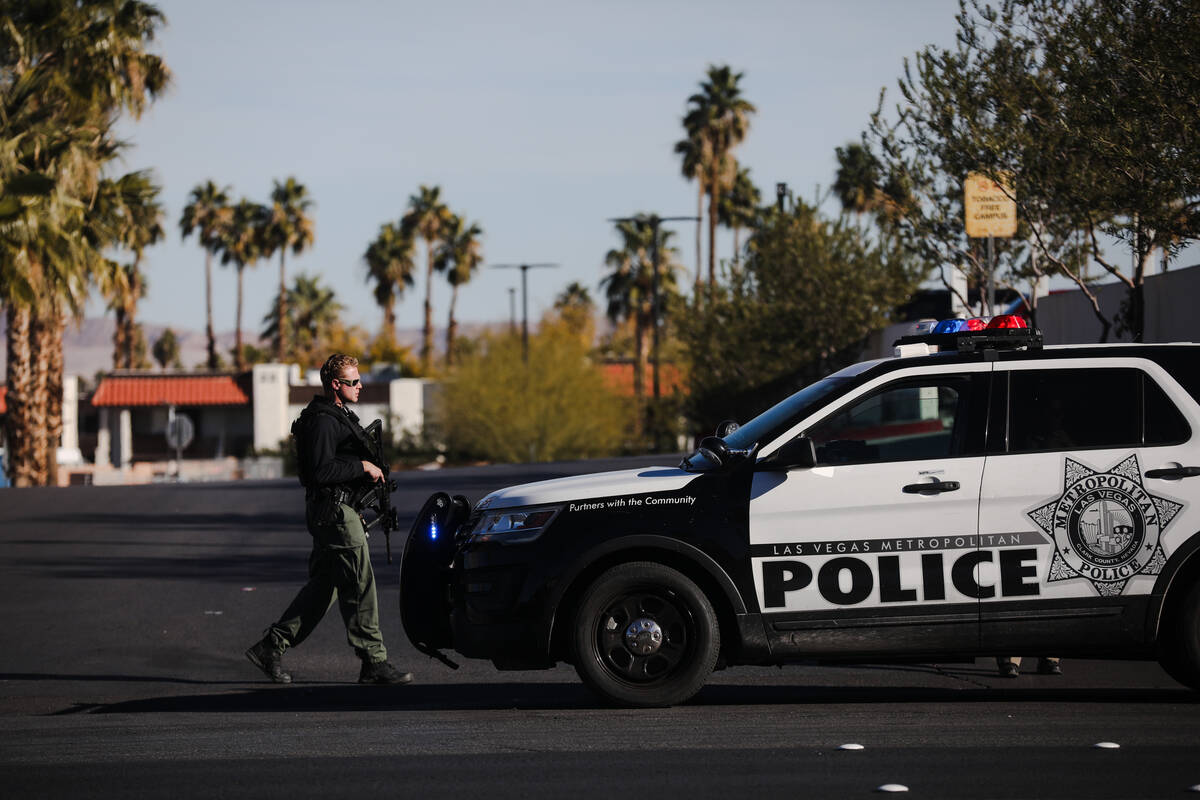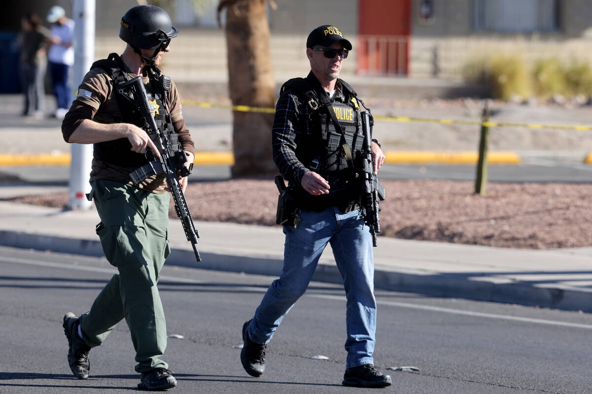 Small crowds gathered on sidewalks at Maryland Parkway and Tropicana Avenue as armored police vehicles drove toward the college campus and handfuls of students walked away from their school.