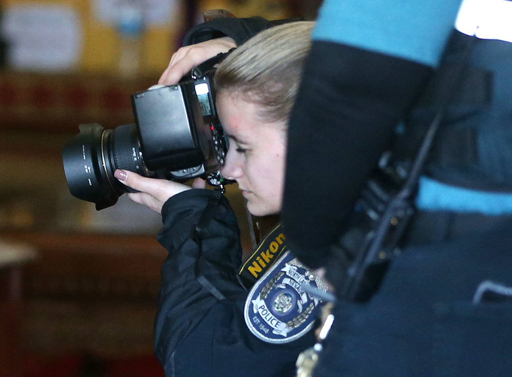 On Tuesday afternoon, a handful of volunteers and worshipers at the temple on Gowan showed up to assess the damage as detectives took photos and continued to process the crime scene. The main interior of the building remained intact and did not appear to be badly damaged.