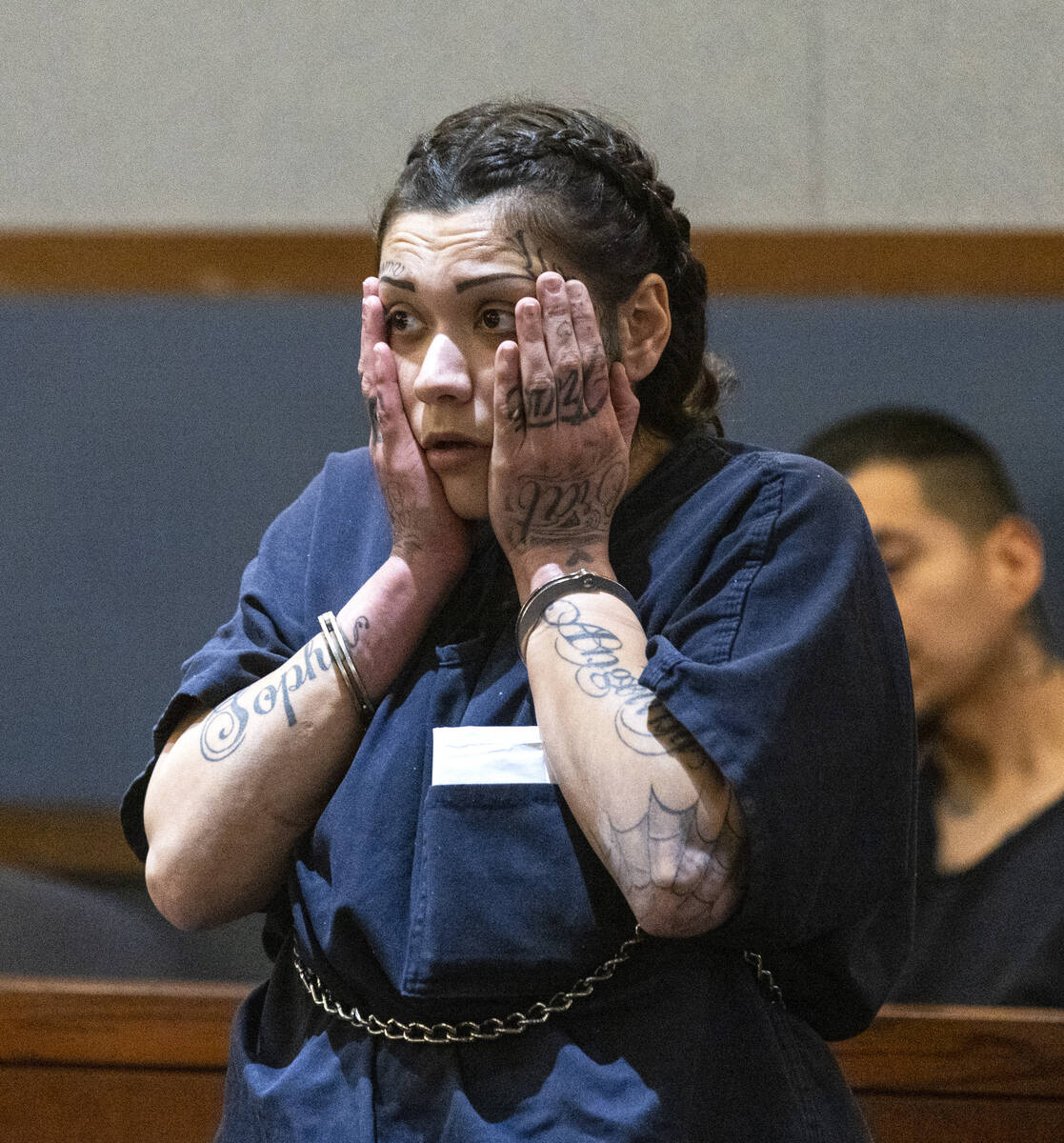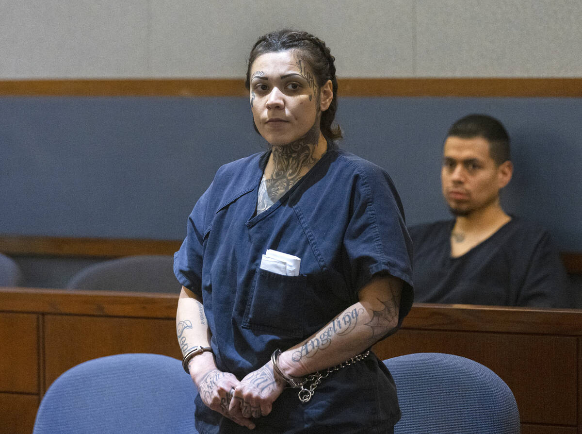 She was booked into the Clark County Detention Center on suspicion of robbery with a deadly weapon, conspiracy to commit robbery with a deadly weapon, grand larceny of motor vehicle, possession of a gun by prohibited person and assault with a deadly weapon on a protected person.