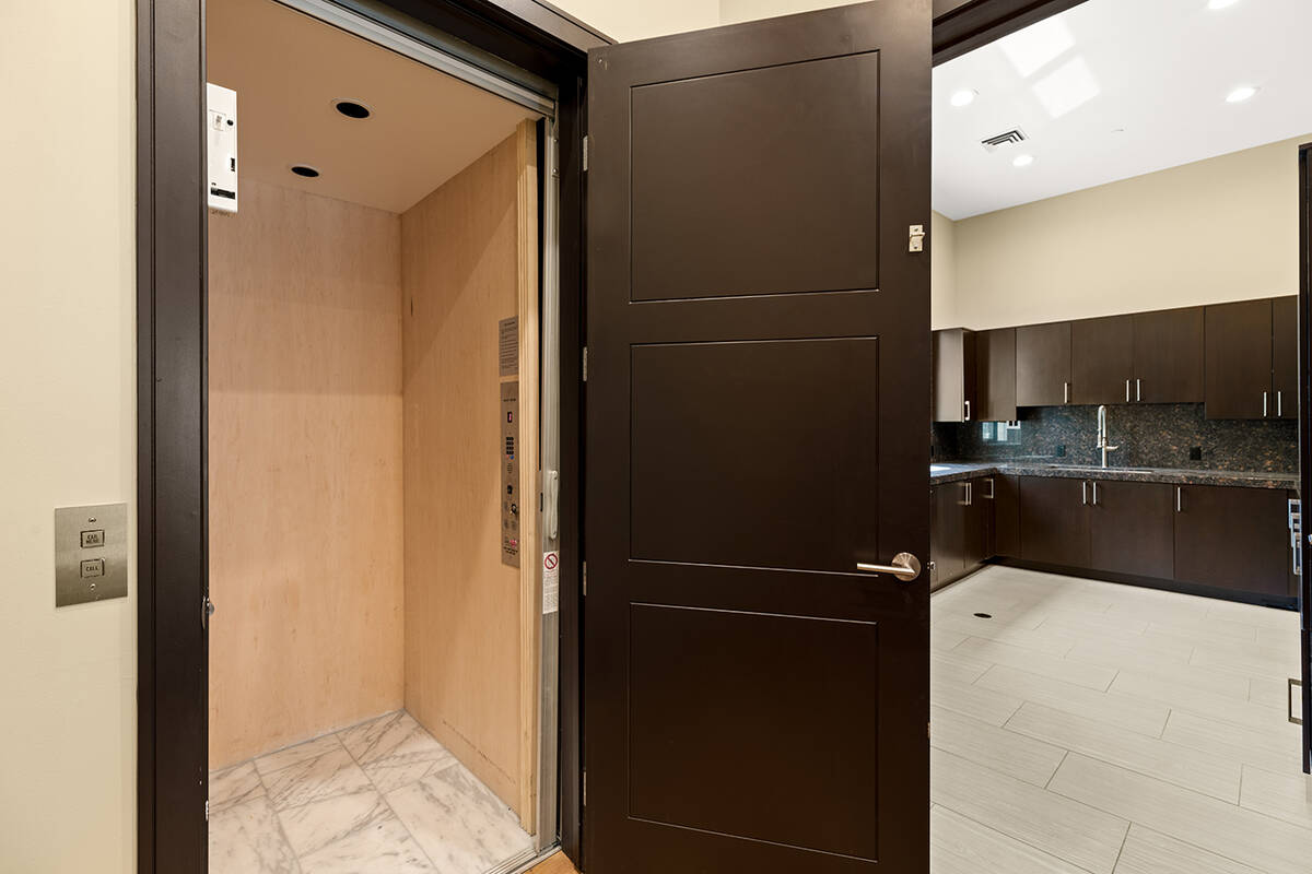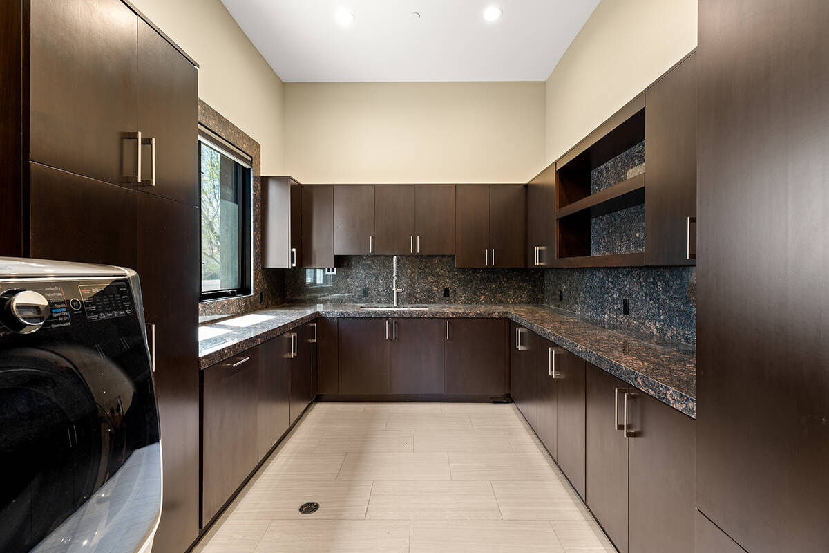 Featuring a few indoor and outdoor gas fireplaces throughout, the estate seamlessly blends indoor and outdoor living with oversized glass pocket doors. An elevator provides easy access to all three floors and a sundeck in the backyard.