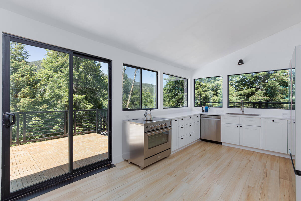 The main level opens into a spacious mudroom, ideal for unloading skis, boots or hiking gear. Beyond the mudroom is a bright, open living and dining area featuring a wood-burning fireplace and panoramic mountain views through oversized windows. A remodeled kitchen with updated cabinetry, fixtures and flooring ties the space together. Also, on this level is the primary suite, which includes dual custom closets, a full bath and access to a private deck, ideal for peaceful mornings or taking in the sunset.