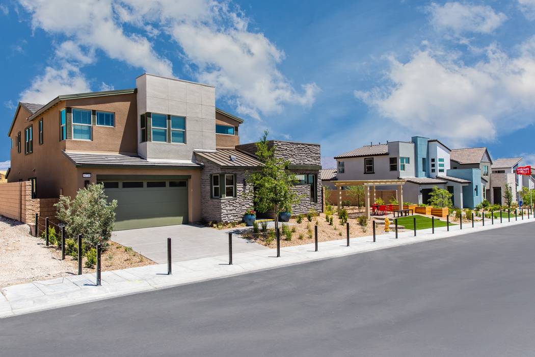 Onyx’s modern, two-story homes offer as many as six bedrooms, five baths and up to 3,386 square feet. Exterior elevations include Modern Spanish, Desert Contemporary and Nevada Living designs, and prices start from $448,000.