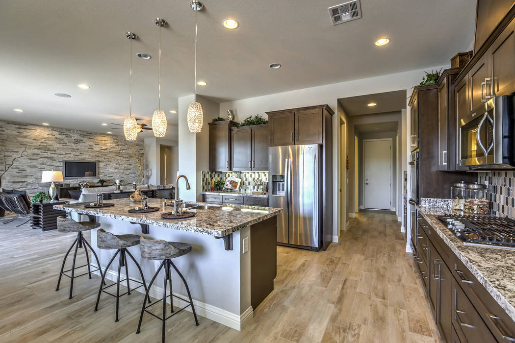 For all four “A Home for the Holidays” residences available, various upgrades are included per plan. These can include granite kitchen counters, paver driveway and walkways, low-maintenance front yard landscaping, Piedrafina bath countertops and tile shower surrounds. Additional features include enlarged windows and doors throughout the homes, 42-inch upper kitchen cabinets, soft water loop and barbecue gas stub. Some master suites include large walk-in showers with rain head fixture and designer tile surrounds.