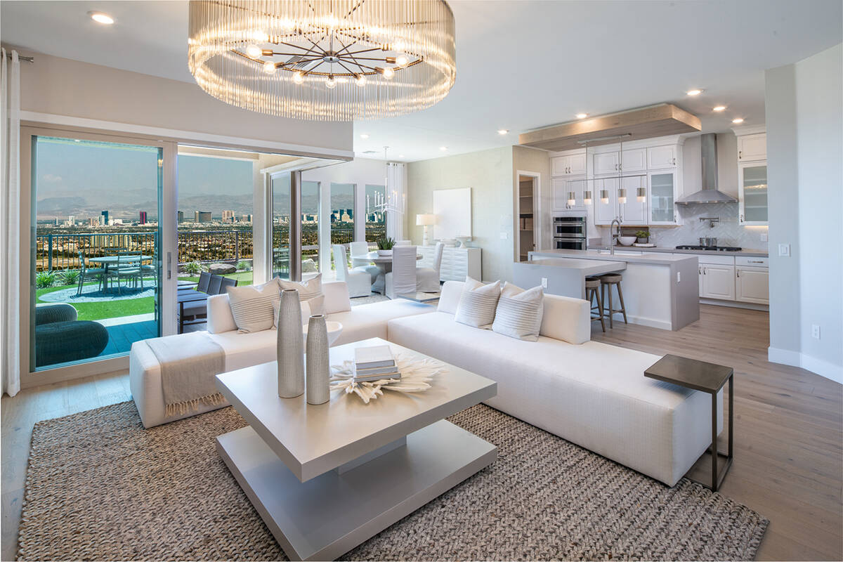 Two neighborhoods in The Cliffs village in the community’s southernmost region nestled adjacent a scenic ridgeline, offer final-opportunity homes, each embracing the area’s desert contemporary architectural style and aesthetic. The village boasts a 4-acre park with pickleball courts and playgrounds, three schools and an indoor public aquatic center operated by Clark County. Jade Ridge by Taylor Morrison has five two-story floor plans remaining that range from 1,592 square feet to 2,366 square feet, priced from the $500,000s. Regency by Toll Brothers is an age-qualified, staff-gated neighborhood offering a complete active-adult lifestyle via an abundance of amenities including a first-class recreation and fitness center, pickleball courts and pools. All Regency homes are single-story and remaining homes range from 1,665 square feet to 1,792 square feet, priced from the $600,000s.
