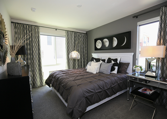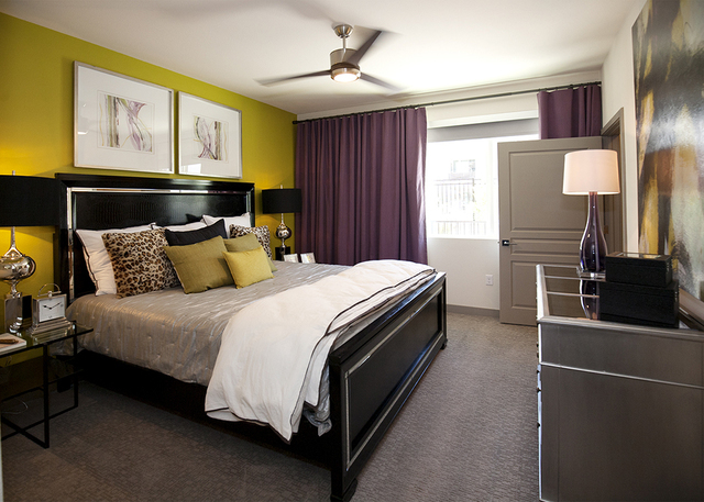 Eisner spoke as he walked a reporter around one of the model wellness units, a two-bedroom home with a “Fifty Shades of Grey” theme. A RabbitAir particulate filter worked noiselessly in the background as Eisner demonstrated the Philips Hue lighting system. Operated by remote control or an app on the resident’s phone, it can adjust brightness and color temperature — blue for energizing, or a calming orange that mimics the setting sun.