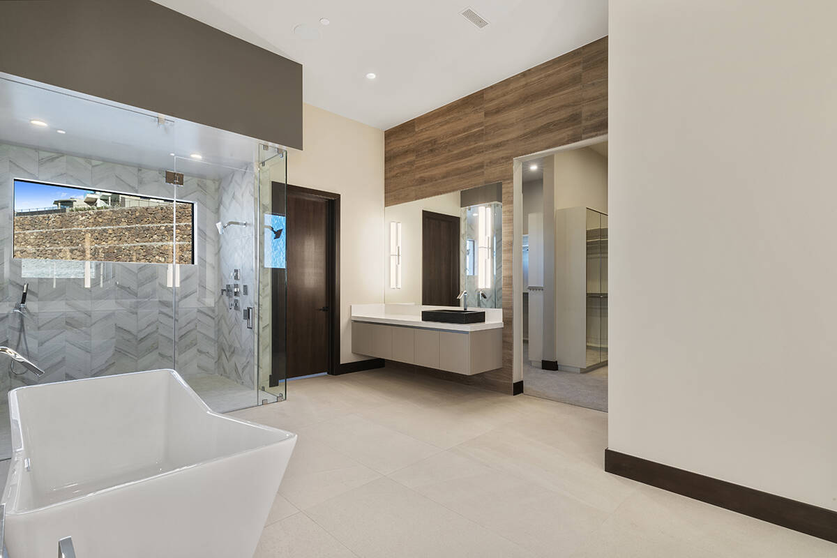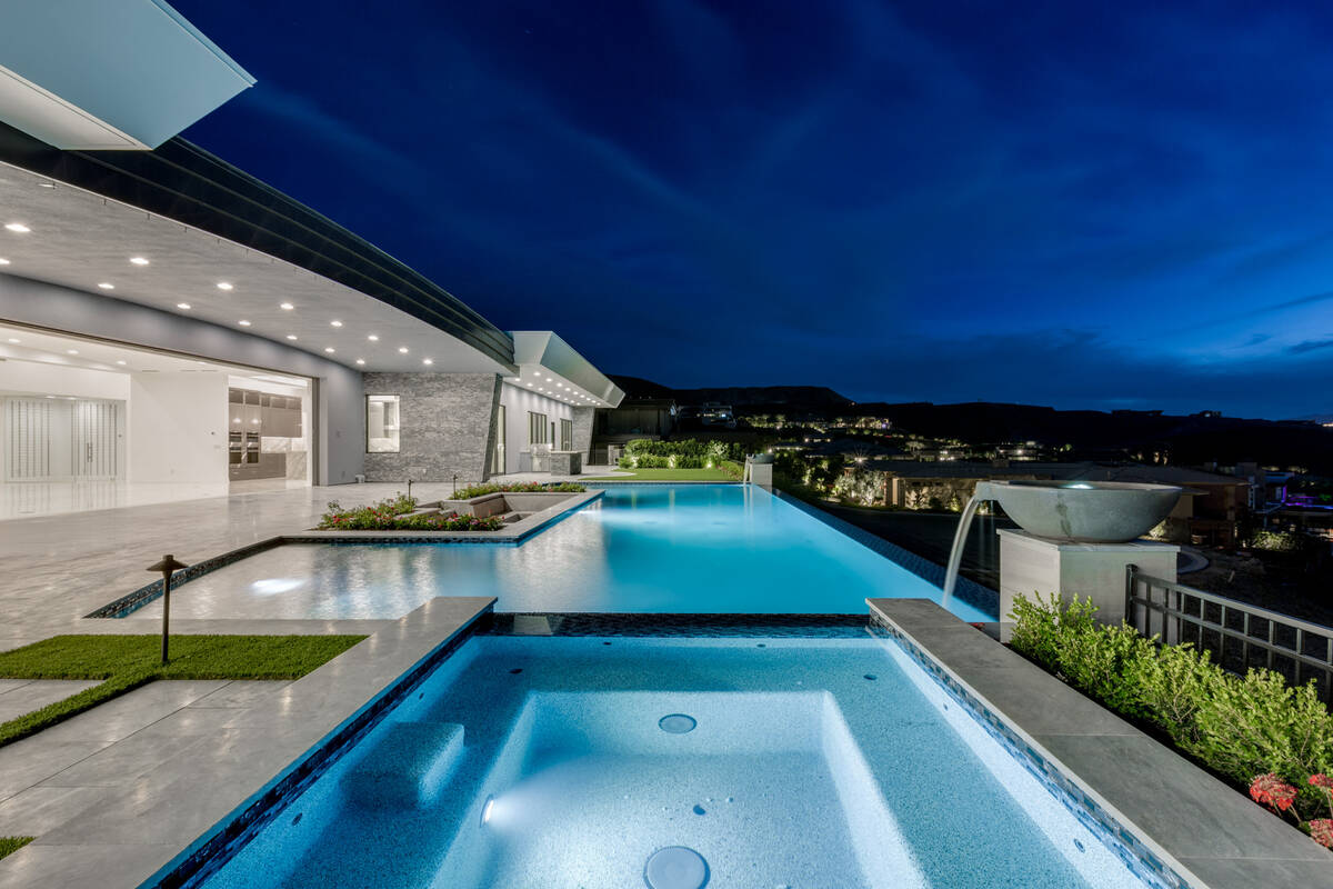 The No. 5 sale of the month on the MLS was for $5.26 million in The Ridges in Summerlin. Built in 2015, the two-story home on 0.29 acres, fronts the fifth fairway of Bear’s Best golf course. It measures 5,267 square feet with four bedrooms and five baths and a four-car garage. It has a casita with a kitchenette. There’s a private courtyard that leads through a pivot door into the foyer with Swarovski light fixtures. A vaulted-ceiling great room opens beyond a sunken wet bar through a motorized pocketing door onto rear grounds with heated covered patio, outdoor kitchen, fire features, swimming pool and spa, according to the listing Beyond the Miele coffee station, the formal dining room features a glass wine cellar with courtyard ambiance, the listing said. There’s an upstairs family room that’s set up for a game room, gym or theater.