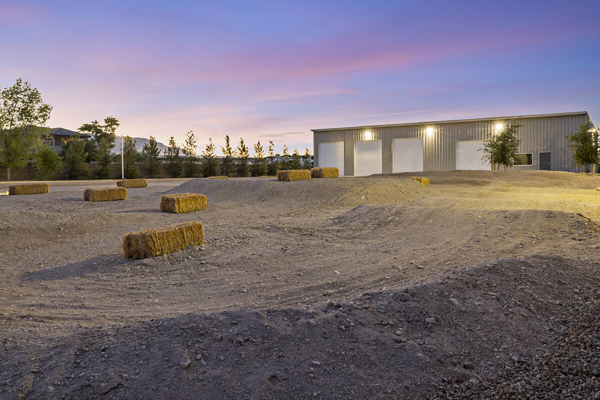 On one side of the reimagined property is a 5,000-square-foot four-bay garage and workshop that holds up to 22 cars and also serves as an air-conditioned man cave with a bar. In front of the garage, is a mini motocross track for dirt bikes because of his family’s lifestyle with outdoor racing and dirt bikes.