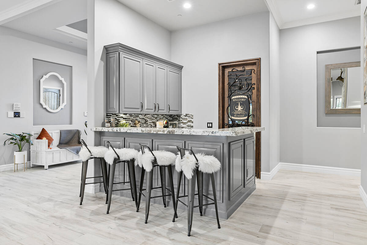 On the other side of the property in the Lone Mountain enclave, Williams refurbished the one-story home into a contemporary Tuscan-inspired mansion with 6,043 square feet of living space across five bedrooms, six baths and a six-car garage.