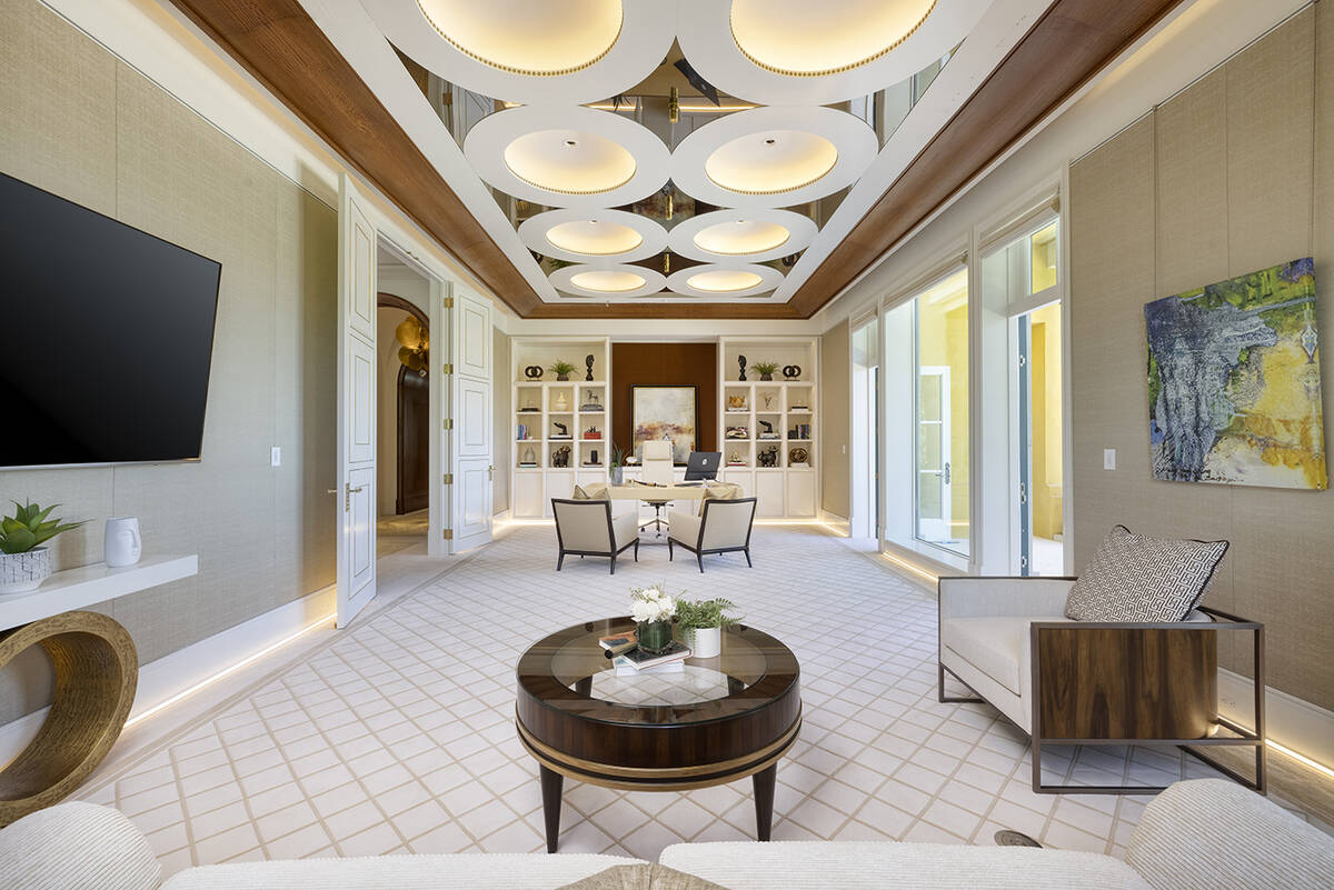 “It’s a sensational home with gorgeous views of the golf course, mountains and Strip,” Sher said. “It’s finishes are phenomenal and it lives as a single-story home even though it’s two stories.”