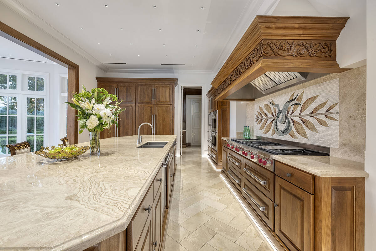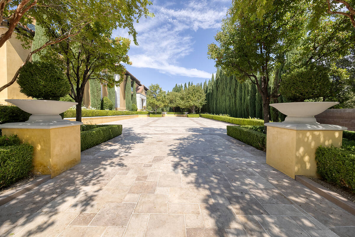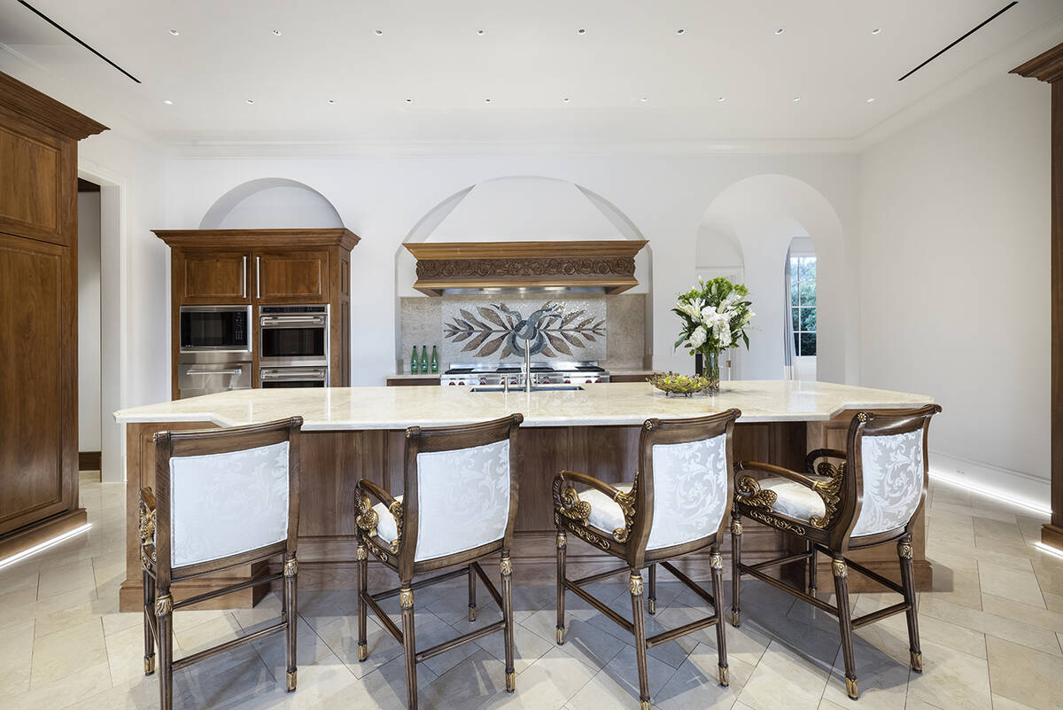 No. 4. A mansion on Boulder Summit Drive in MacDonald Highlands in Henderson is on the market for $18 million. It sits on 2 acres and overlooks DragonRidge Country Club. It has more than 14,000 square feet with a resort-style backyard, two swimming pools, spa, seven waterfalls with a Ben Hogan replica bridge from Augusta National where the Masters is held. There’s 16-foot ceilings, a chef’s kitchen, wine cellar grotto, cocktail bar, 12-seat theater, game room, wellness wing with spa, steam, sauna and gym. The home has two home offices with five guest bedrooms and a master suite. It has a seven-car garage.