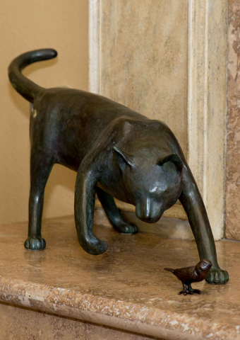 In its Red Rock Country Club cul-de-sac setting, the Grassy Spring Place home is camouflaged in the front. A verdant covering of leaves — from both trees and grapevines — frame a flagstone-lined entrance. At first glance, the home appears not too different from its neighbors. This soon changes for visitors who walk through the foliage into a front courtyard complete with a fireplace and, of course, the main entrance.