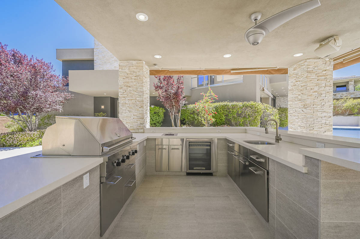 Clark County property records show the two-story home, 14 Drifting Shadow Way, was built in 2009 and acquired in November for $2.74 million. It has since been extensively remodeled by Realtor Madison Blau Benshimon, an agent with the Ivan Sher Group of Berkshire Hathaway HomeServices, and her husband, Michael Benshimon. She is the listing agent for her home.