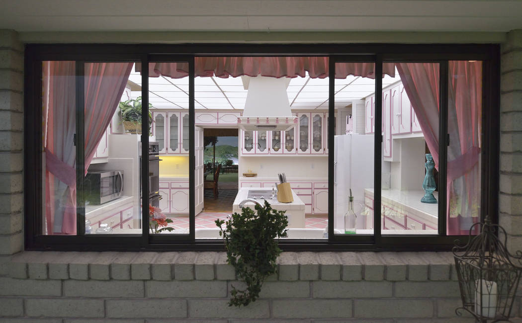 It’s like many other homes with a dining room, living room and audiovisual room. The bar has short stools: Mary Henderson was less than 5 feet tall and her husband not much taller. The kitchen has pink-trimmed flooring and cabinetry and has an original toaster built into the wall and a food processor in a cabinet.