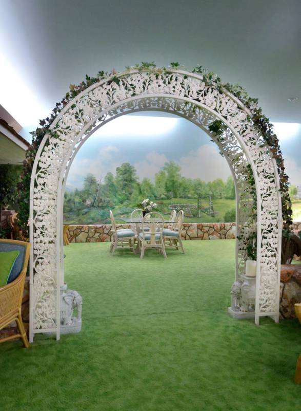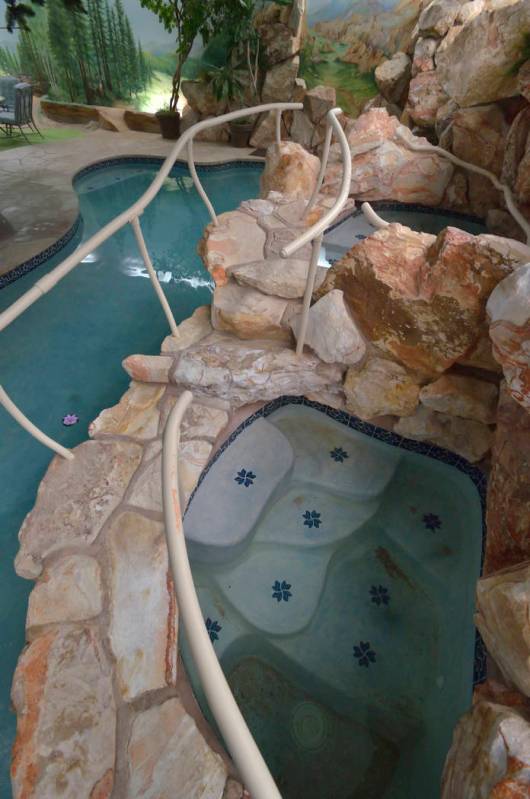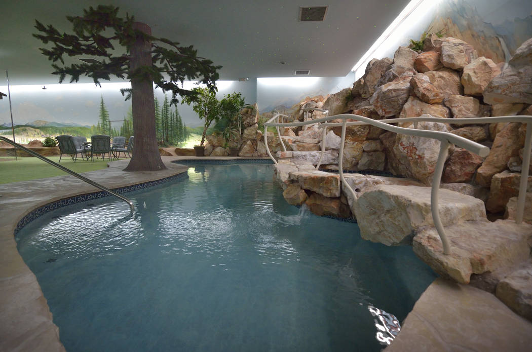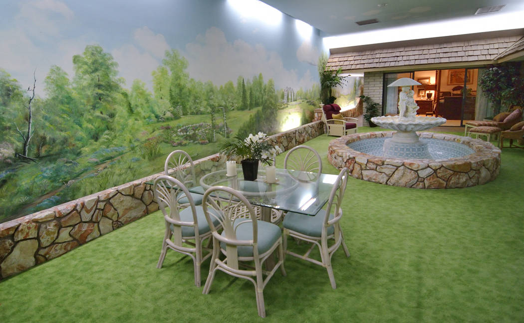 There’s a 6-foot-deep pool, a spa, a barbecue area, a carpeted six-hole putting green and even views when you look outside the window of the home or from the patio. It’s not the Strip city lights or surrounding mountains but murals of settings where the Hendersons had homes in upstate New York, Colorado, Los Angeles and the San Francisco Bay Area.