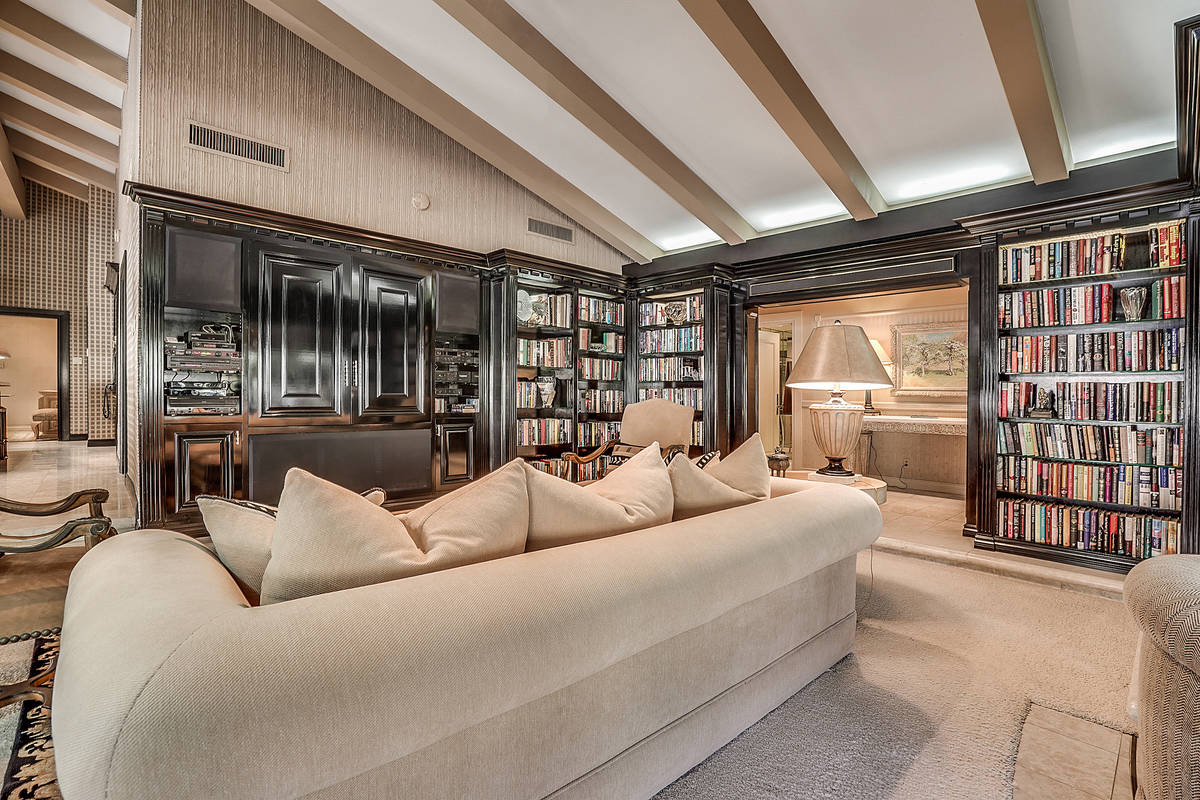 The estate features four en suite bedrooms with dual master suites, six and a half bathrooms, an office/library with custom built-ins, formal living room, formal dining room and a great room with a sunken bar.