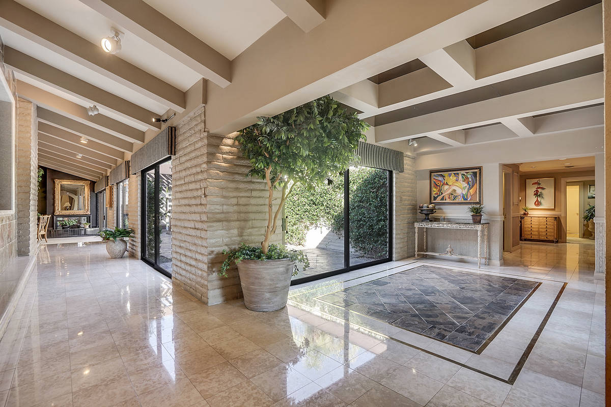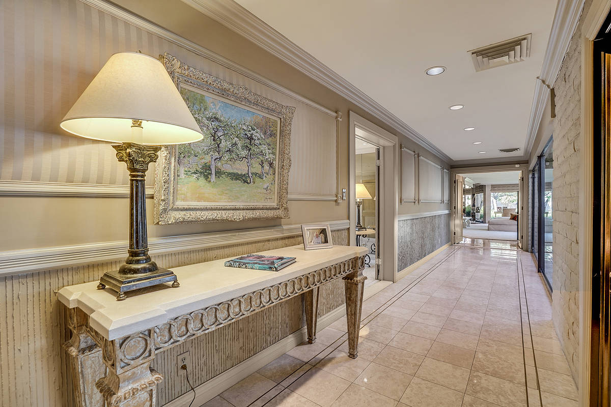 Access into the estate begins with a private gated entry. Smith refinished the entry’s front stone motor court that provides substantial guest parking.