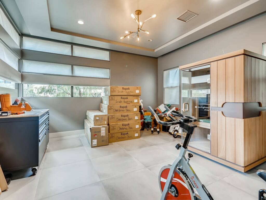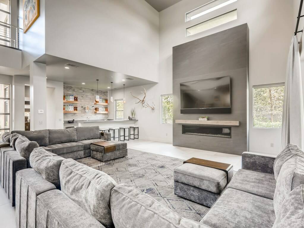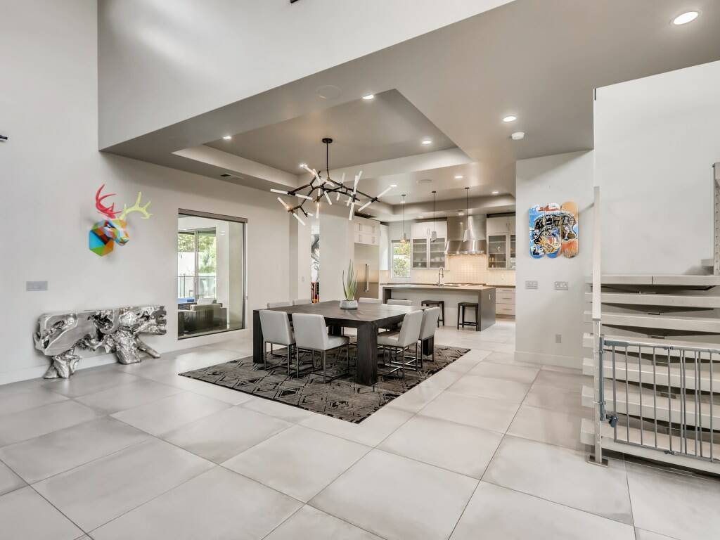 The Realtors’ listing said the home features “exquisite architecture and high-end designer finishes. The home showcases an open floor plan with oversized multislide pocket glass doors that seamlessly create a soothing indoor/outdoor atmosphere.”