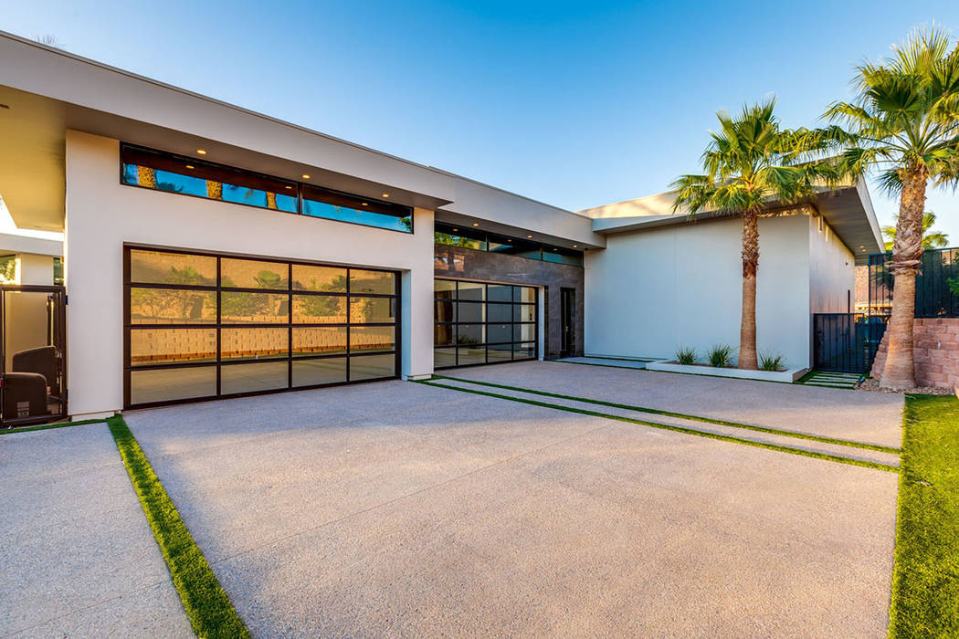 The one-story, contemporary home has five bedrooms (one that is being used as a spa room), six bathrooms, four-car garage, theater room, walk-in refrigerated wine room, pantry and prep kitchen, resort-style pool and spa and outdoor barbecue and kitchen on a 0.65-acre lot. What sets the home’s exterior apart is a stairwell that leads to a 2,000-square-foot rooftop deck with its own kitchen, fire pit and flat screen televisions.