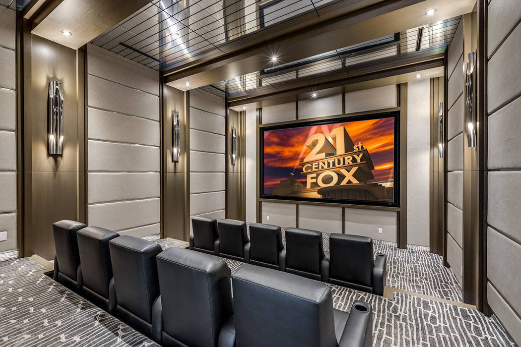 The home has a state-of-the-art theater room and wine room that holds up to 400 bottles of wine. The exercise area has a spa feel to it with a massage table.