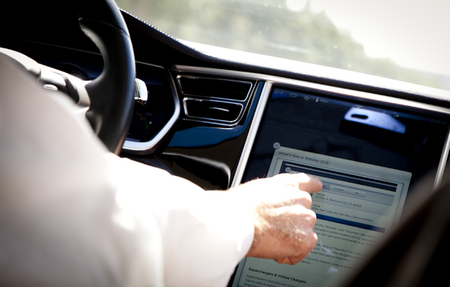 Lemke’s Tesla Motors Model S hosts its own set of in-car applications that make commuting from home to work a luxury experience. When driving home, the Model S uses its GPS system to sense when it is near the garage entrance and automatically pops up a menu on its touch screen to signal the garage door opener.