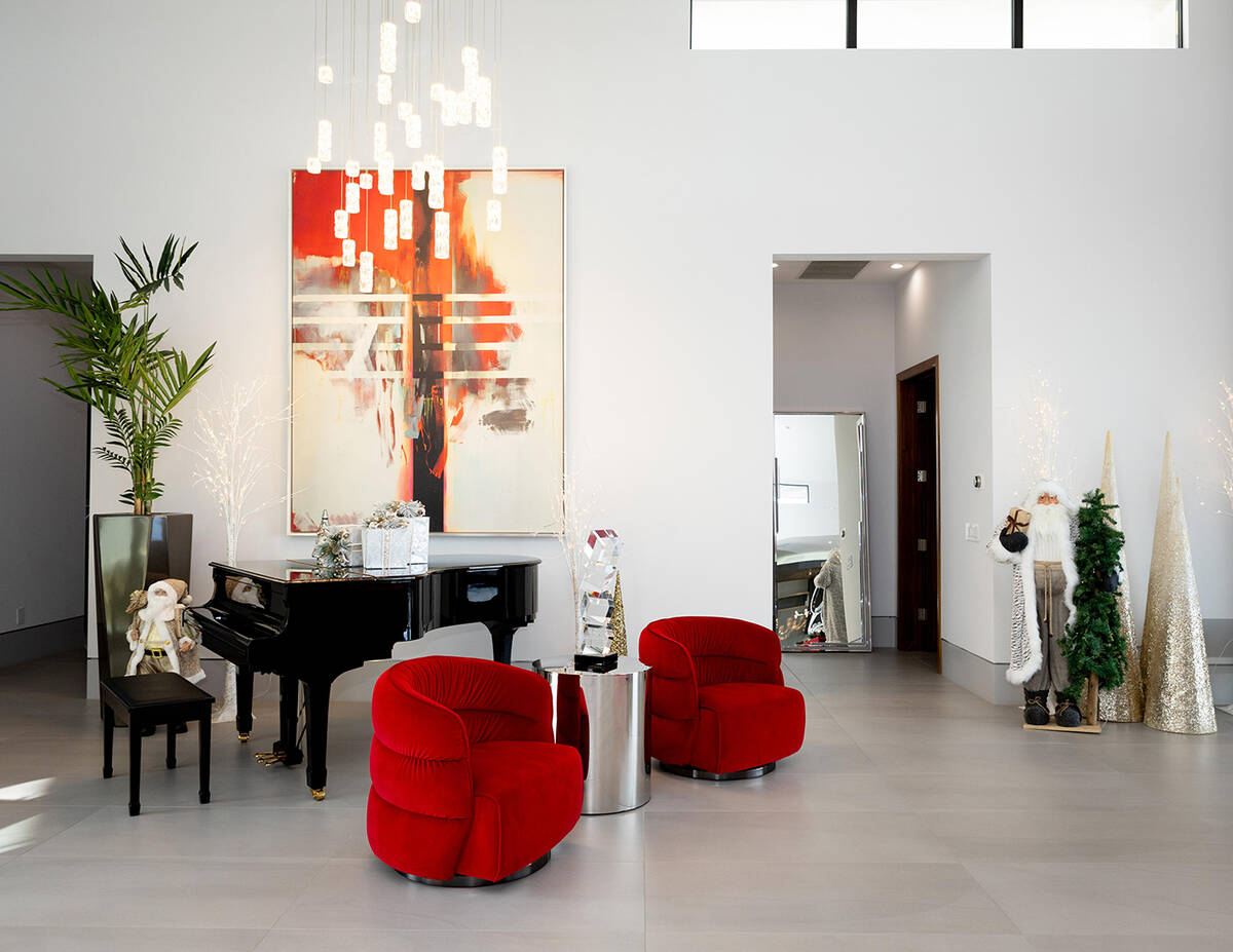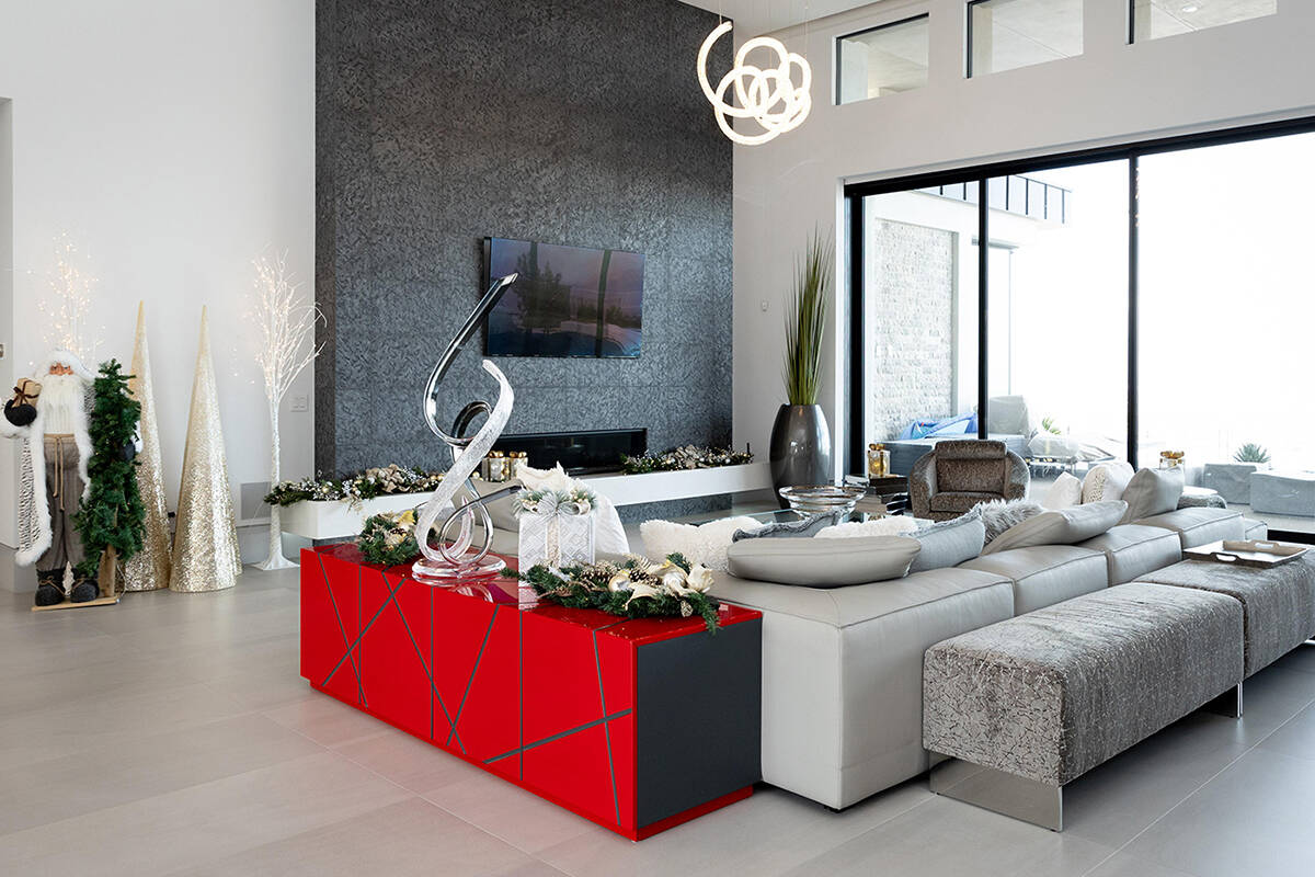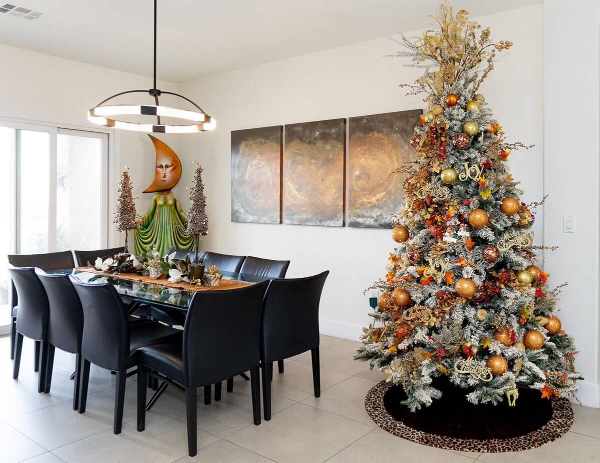In Anthem Country Club, Sullivan shifted from modern to traditional design. The holiday theme incorporates classic red and green with a touch of plaid.