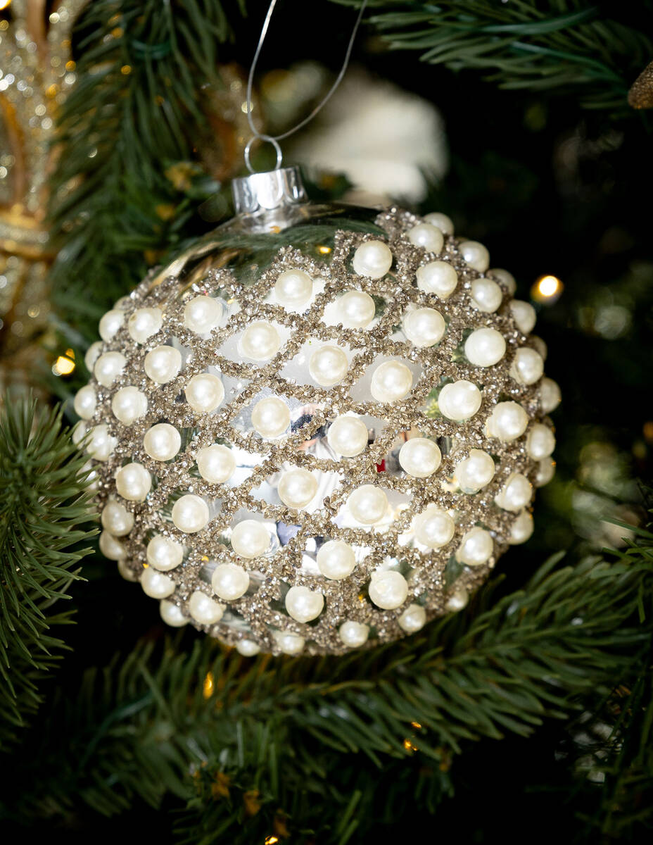 Sullivan chose three silver mini trees to line the main room’s fireplace hearth, displaying the couple’s 50 ornaments collected over 50 years of marriage.