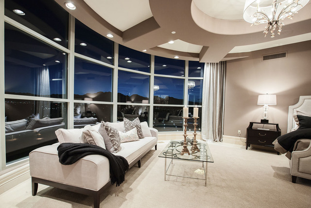 Picture-window views pan across the Spring Mountains to the west, quaint shops and restaurants lining Boca Park and Tivoli Village below and the distant twinkling lights and silhouettes of all the major hotels on the Strip.
