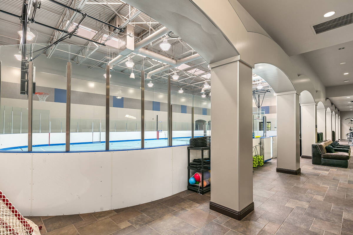 The one-story home built in 2006 sits on 5.1 acres and measures 13,853 with seven bedrooms, 14 baths and a 16-car garage. A second building measuring 24,436 square feet is a recreational building that holds a kitchen, indoor roller hockey, basketball and tennis court. It also has a racquetball court, batting cage, golf simulator and a zipline.