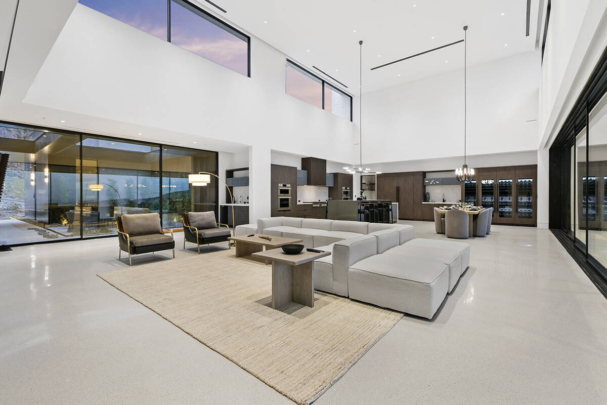 The 7,575-square-foot two-story estate features state-of-the-art features and dynamic views of the Las Vegas Strip. The interior design uses layered effects, organic materials and warm neutral tones to inspire serenity while mirroring the surrounding landscape.