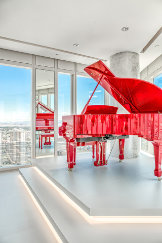 While walking through the ornate doors of a 45th-floor penthouse that ultimately would fetch the highest price per square foot at The Residences at Mandarin Oriental last month, a cherry red piano stood out amidst the home’s crisp white backdrop.