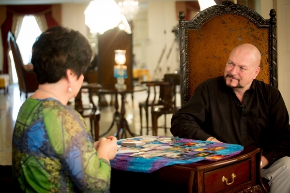 After the tour they sat down for a tarot card reading in the grand living room. Ravenhill began by drawing five cards and leaving them face down. Soon a card fell from the table.